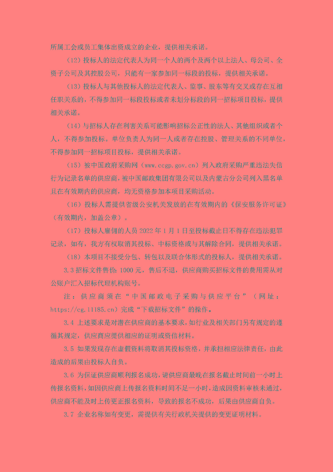 中國郵政集團有限公司興安盟分公司保安外包服務(wù)項目招標公告